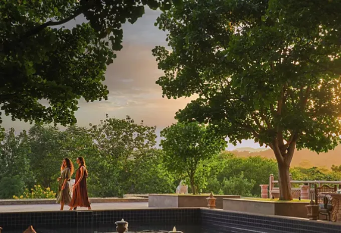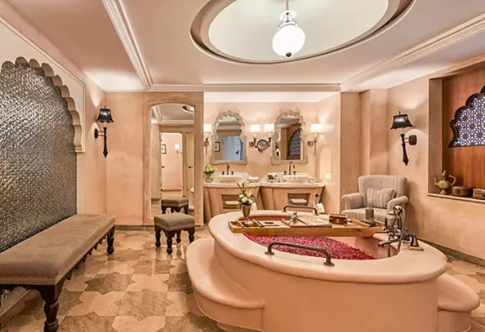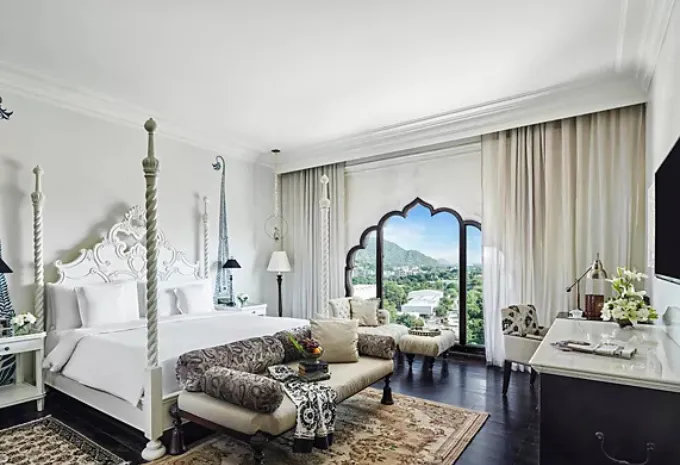Fairmont Jaipur, nestled in Kukas, offers an opulent setting for your dream wedding. With 245 luxurious rooms and suites, it ensures a comfortable stay for your guests. The venue boasts multiple event spaces, including two expansive lawns and a grand ballroom, accommodating up to 3,000 guests. Couples can choose from curated wedding packages that encompass venue rental, catering, décor, and accommodations, ensuring a seamless celebration. Culinary offerings range from ₹4,300 to ₹4,500 per plate for vegetarian and non-vegetarian meals, respectively. For a two-day wedding with 200–300 guests, the estimated cost ranges between ₹1.5 crore and ₹2.5 crore, depending on customization and additional services.